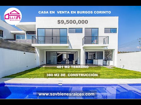 <p> Casa Minimalista NUEVA en Venta en Burgos Corinto, Temixco Morelos.<br><br>Exclusivo fraccionamiento con doble filtro de vigilancia las 24 horas.<br><br>A 15 minutos al Sur de Cuernavaca.<br><br>Detalles arquitectonicos de buen gusto que ofrece una excelente iluminación y amplios espacios.<br></p><p><br>Hermoso Jardín y alberca, jacuzzi para 8 personas equipado con bomba de calor. <br><br>Terreno 481 m2 y Construcción: 380 m2<br><br>Sala a doble altura la cual le da una iluminación natural a toda la casa<br><br>Comedor con vista al jardín el cual se integra a la terrraza para así pasar hermosos momentos con familia y amigos.<br><br>Elegante cocina equipada con isla desayunadora de granito que se integra a la terrraza-Bar.<br><br>3 Recamaras todas con closet y baño, 2 de ellas con balcón con vista al jardín.<br><br>Estudio ó CUARTA RECAMARA EN PLANTA BAJA<br><br>Espacio proyectado para Roof garden con una hermosa vista panoramica.<br><br>4 baños en toda la casa.<br><br>Área de lavado techada.<br><br>Garage para 5 autos, 3 de ellos techado.<br><br>El fraccionamiento cuenta con dos casas club, áreas comunes con alberca y chapotadero equipados, canchas de tenis, futbolito, palapa para eventos, etc.<br><br>Casi 4,000 m2 de áreas comunes.<br><br>Previa cita.
